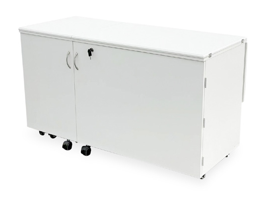 The Outback Electric Sewing Cabinet is the premier large-lift sewing cabinet from Kangaroo Sewing Furniture, engineered to accommodate the largest, premium sewing machines on the market – up to 65lbs. Enjoy multiple configurations with the rolling storage cabinet, and an abundance of project-space with the folding leaves. The Outback Electric is designed to take up a small amount of space when the leaves are dropped and the doors are closed, with the machine tucked away free from dust.