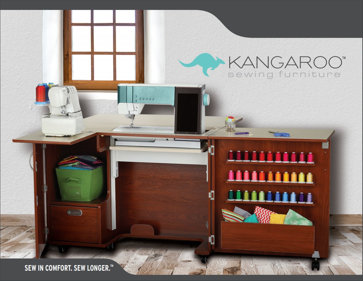 The Wallaby comes with a quilt leaf on the back of the cabinet that saves space by folding up or down and will help to expand your work area when in use, preventing large quilts or large pieces of fabric from falling onto the floor behind the cabinet.